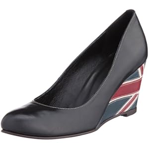 [キャサリン ハムネット ロンドン] ユニオンジャック ウエッジ ラウンド パンプス 41183 BL (ブラック/23.5)